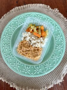 Creme de frango com arroz integral com ervilhas e mix de legumes